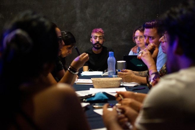 En esos talleres conocimos más a fondo a Sheila Caballero Nuño (entonces coordinadora del Centro de las Artes de Querétaro) y a su equipo de trabajo: Pedro Cruz Hinojosa (encargado del área de educación) y Mónica Arandia (encargada del área de producción artística). En su momento les identificamos como aliades dentro de la institución porque coincidimos en la razón de ser de la secretaría de cultura y del centro de las artes: apoyar a lxs artistas, ofreciendo programación relevante para lxs habitantes de la ciudad.